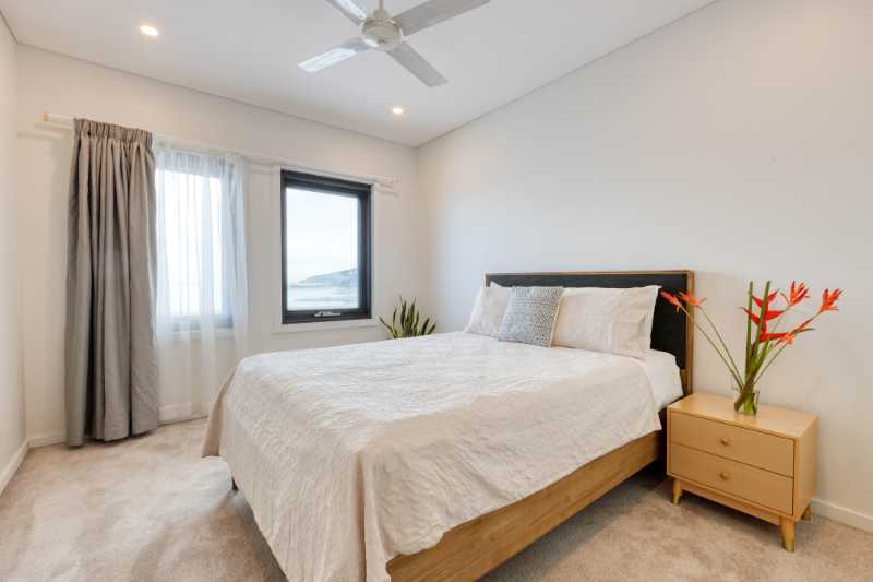 This multi‑level townhouse offers functional living across four levels. The ground floor includes garage parking, laundry, and storage. Open‑plan kitchen, dining, and living areas are located on the first floor, flowing to a balcony with ocean views. The second floor features the master bedroom with ensuite, private balcony, and adjoining office or additional living space. Two further bedrooms and a shared bathroom are positioned on the top level. Residents have access to a shared gym and swimming pool.